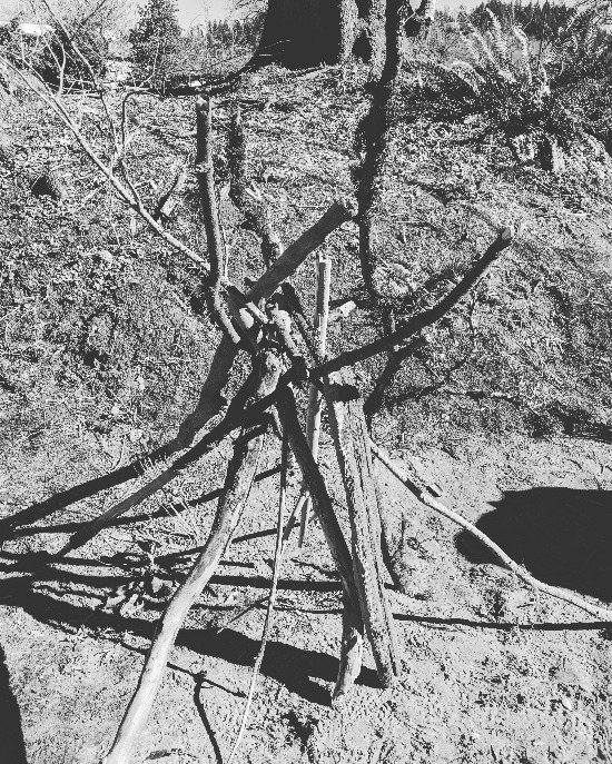 Around the same time my kids and I started making stick lean-to structures around our neighborhood and alongside the creek that runs through the heart of town. We would stop and build them up one stick at a time, sometimes carefully, sometimes slapdash, balancing fallen branches and bits of twigs.