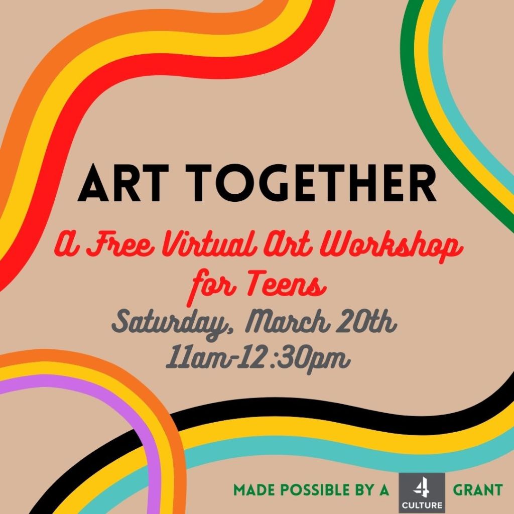 Art Together is a series of free art workshops for residents of Issaquah, WA. Made possible by a grant through 4Culture, the workshops will use creative processes to explore how the pandemic is impacting our lives. Each workshop is geared towards a specific age group and free supplies are provided for the participants.